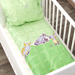 Alvi Zestaw poszewka na kołdrę i poduszkę (80x80, 35x40) - Hipopotamy zielony 401102573